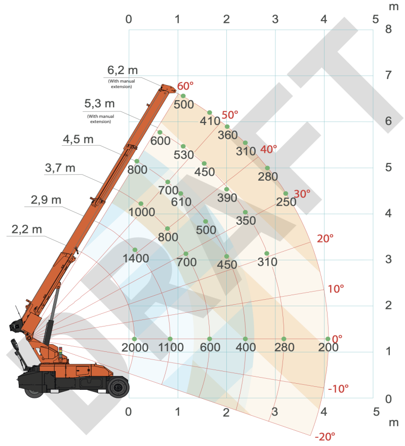 Unique dans la catégorie des grues automotrices industrielles avec un système télescopique à vérins internes, une attache rapide et une large gamme d’accessoires.