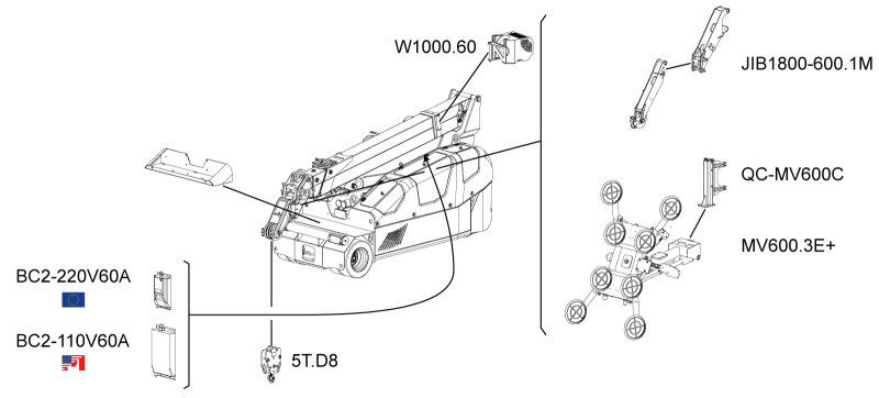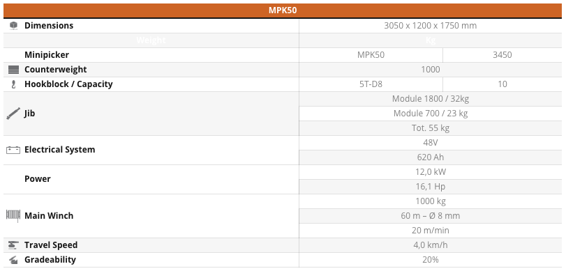 L’innovation à l’état pur. Totalement radiocommandée, alimentée par batteries, 5 tonnes de Pick & Carry, le système breveté pour la rotation du bras et la barre stabilisatrice font de cette grue un produit unique en son genre.