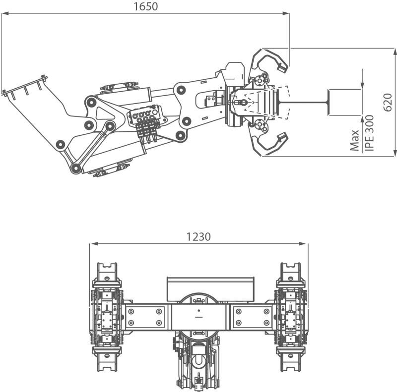 Manipulateur pour poutres et tuyaux.